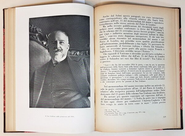 Vol. in -8 (17 x 23,5 cm.), legatura mezza pelle marrone con angoli, piatti cartonati marmorizzati rossi e verdi, titoli in oro al dorso, pp. 181, (1), 10 tav. in b.n. f.testo a p.pagina. Fogli leggermente ingialliti dal tempo ma nel complesso in buone condizioni (integro e ben legato) - In allegato lettera del nipote del Marchese di San Giuliano (datata 1946) diretta all'autore G. Tadini.