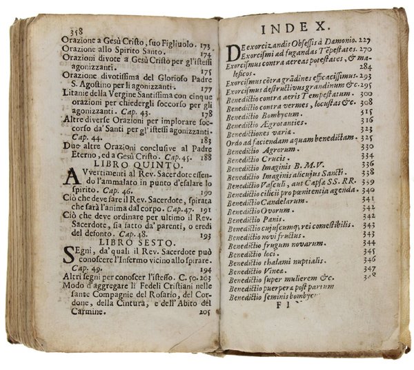 IL MEDICO SPIRITUALE AL PUNTO, in cui si somministra al Reverendo Sacerdote tutto ciò che fa bisogno alla cura spirituale degl'Infermi. fino al Punto di Morte + ESORCISMI PER GLI OSSESSI, Cavati dal Rituale Romano di Paolo Papa Quinto. | Libri antichi e moderni | Giustoboni Pietro Andrea Da Bergamo Agostiniano.