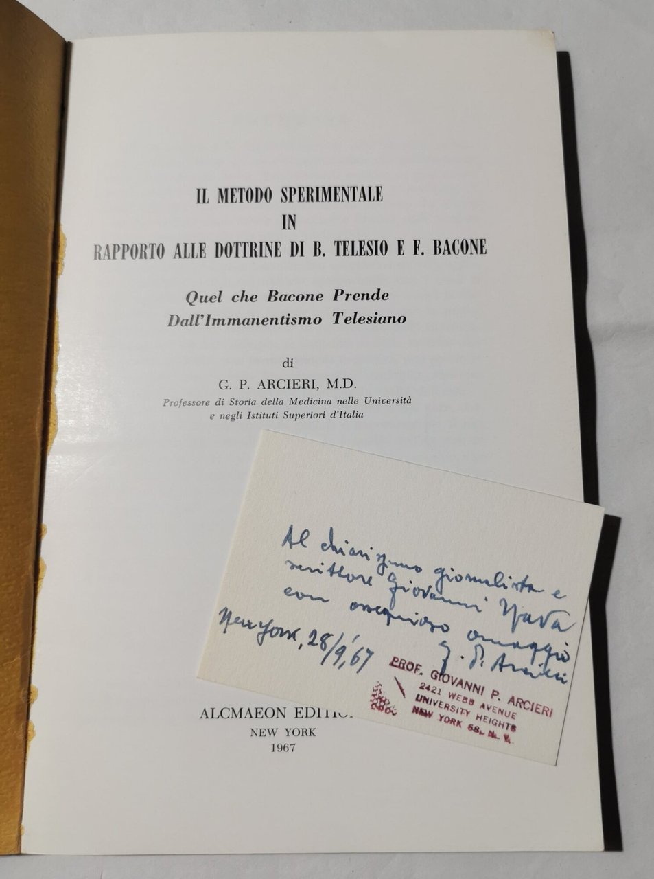 Il metodo sperimentale in rapporto alle dottrine di B. Telesio e F.Bacone | Libri antichi e moderni | Arcieri, P. Giovanni