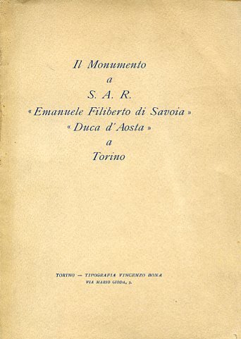 Il Monumento a S. A. R. 'Emanuele Filiberto di Savoia' 'Duca d'Aosta' a Torino | Libri antichi e moderni | Figari Giuseppe (Generale)