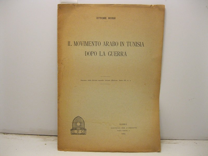 Il movimento arabo in Tunisia dopo la guerra. Estratto dalla Rivista mensile Oriente moderno, anno III, n.4 | Libri antichi e moderni | Rossi Ettore