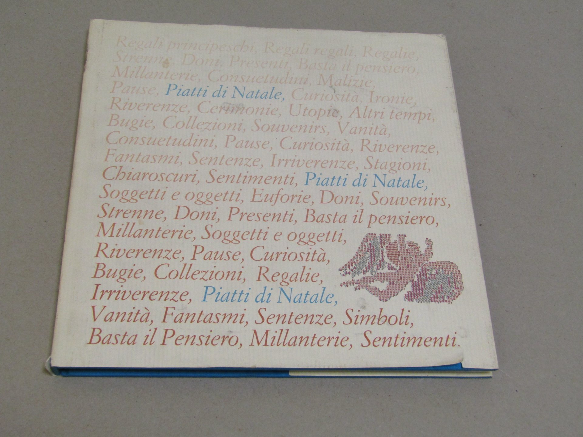 AA. VV. Il Piatto di Natale. Milano, Progetto editoriale Network 1983 - I italiano, in quarto pp.non numerate Libro dedicato ai Piatti di Natale e ai possibili regali più strani. Copertina cartonata con sovraccoperta. Sovraccoperta leggermente strappata agli angoli inferiori.