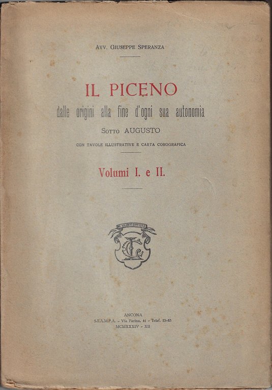 Il Piceno : dalle origini alla fine d'ogni sua autonomia sotto Augusto | Libri antichi e moderni | Speranza, Giuseppe, ,Speranza, Giuseppe