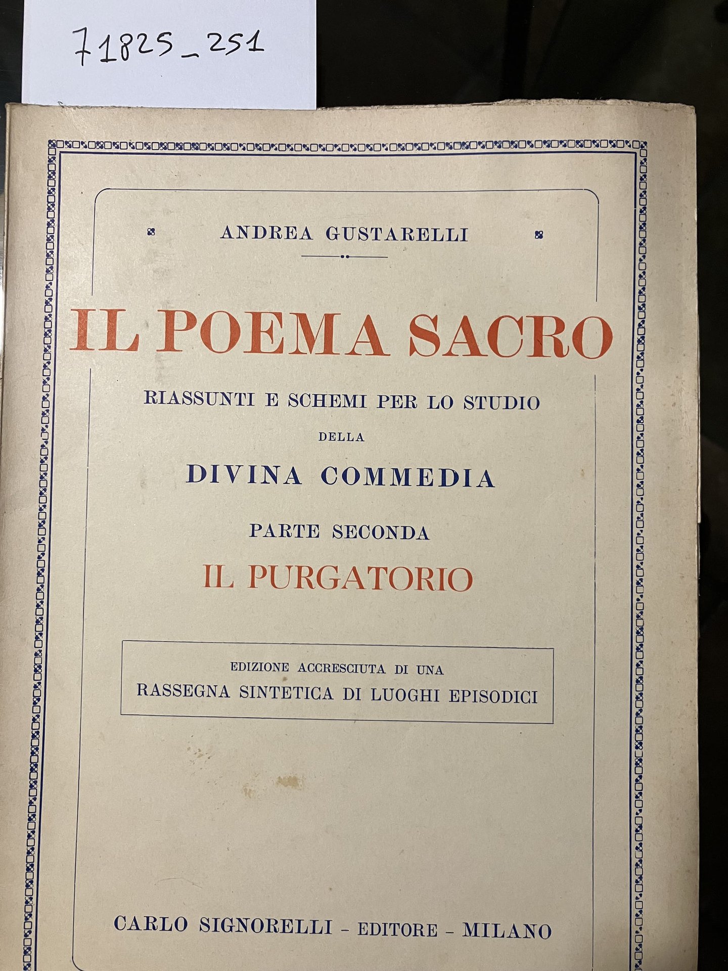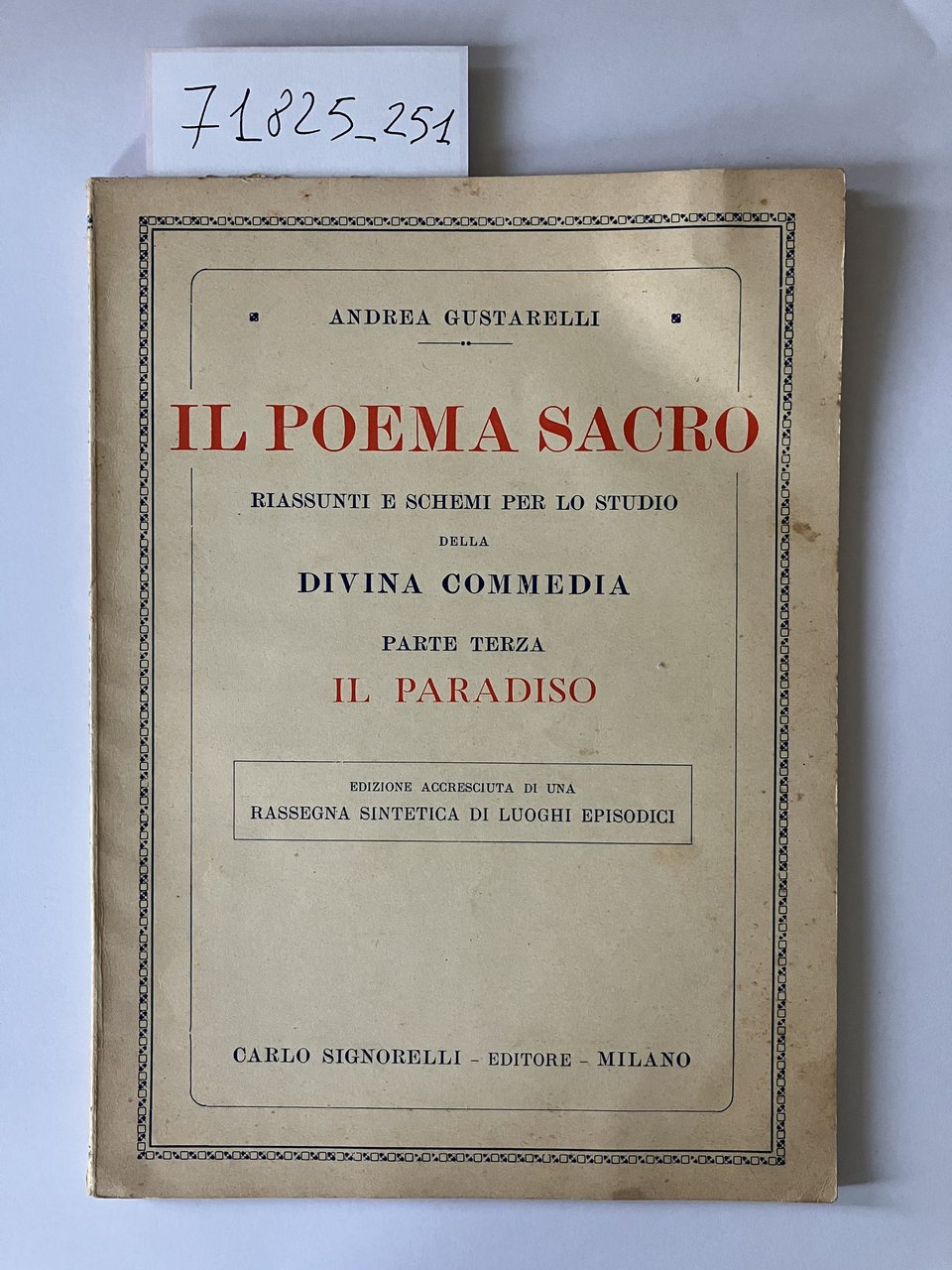 Il poema sacro parte prima,seconda,terza | Libri antichi e moderni | Gustarelli, Andrea, Trad. Piero Treves.
