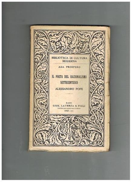 Il poeta del razionalsimo settecentesco Alessandro Pope. | Libri antichi e moderni | Prospero Ada.