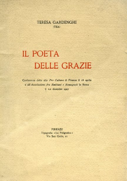 Il poeta delle Grazie. Conferenza detta alla Pro Cultura di Firenze il 18 aprile e all'Associazione fra Emiliani e Romagnoli in Roma il 10 dicembre 1927 | Libri antichi e moderni | Gardenghi Teresa (Tea)
