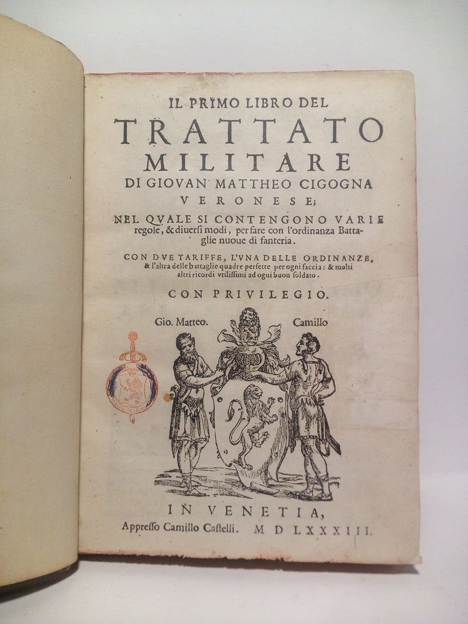 Il Primo Libro del Trattato Militare, di Giovan Mattheo Cigogna Veronese; Nel quale si contengono varie regole, & diversi modi, per fare con l'ordinanza Battaglie nuove di fanteria. Con due tariffe, l'una delle ordinanze, & l'altra delle battaglie quadre perfette per ogni faccia: & molti altri ricordi utilissimi ad buon soldato | Libri antichi e moderni | Cigogna, Giovan Mattheo