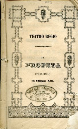 Il Profeta. Opera ballo in cinque atti di Scribe. Musica di Meyerbeer. Da rappresentarsi al Teatro Regio nell'autunno 1853 alla presenza delle LL. SS. RR. MM.