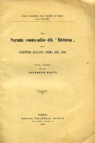 Il Programma economico - politico della 'Mitteleuropa' negli scrittori italiani prima del 1848. Due note | Libri antichi e moderni | Prato Giuseppe