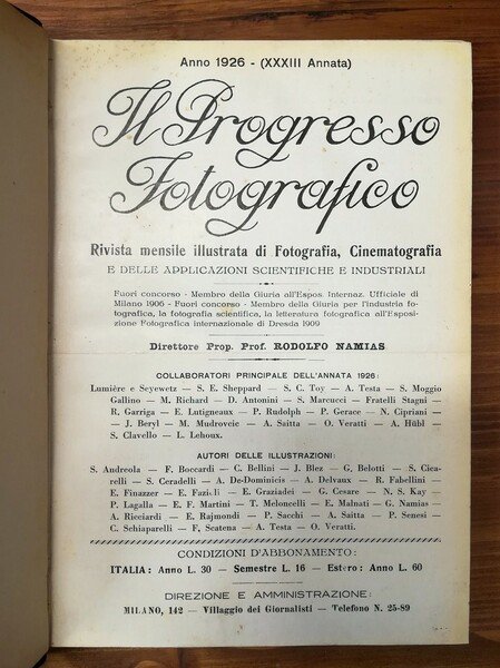 Il Progresso Fotografico. Rivista mensile illustrata di Fotografia, Cinematografia e delle applicazioni scientifiche e industriali - 8 annate complete dal 1926 al 1934 | Libri antichi e moderni | Namias, Rodolfo (Direttore)