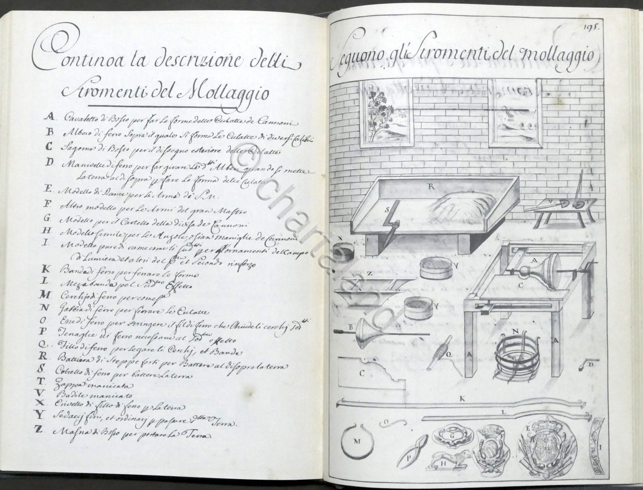 Il Regio Arsenale di Torino nel '700 - Lavoro e tecnica - A cura di Ario Romiti, Pier Luigi Bassignana - 1^ ed. 1981 Contiene la riproduzione anastatica di: "Dissegni d'ogni sorta de cannoni, et mortari con tutte le pezze, stromenti et utigli appartenenti all'artiglieria como anco le piante, alzate, et profili di tutte le macchine, edifizy, et ordeggni necessary per la medema" pubblicato nel 1732Pag. 46 + 245 tavole con testo a fronte Copertina rigida - Testo in italiano. Condizioni generali molto buone. Con cofanetto originale.