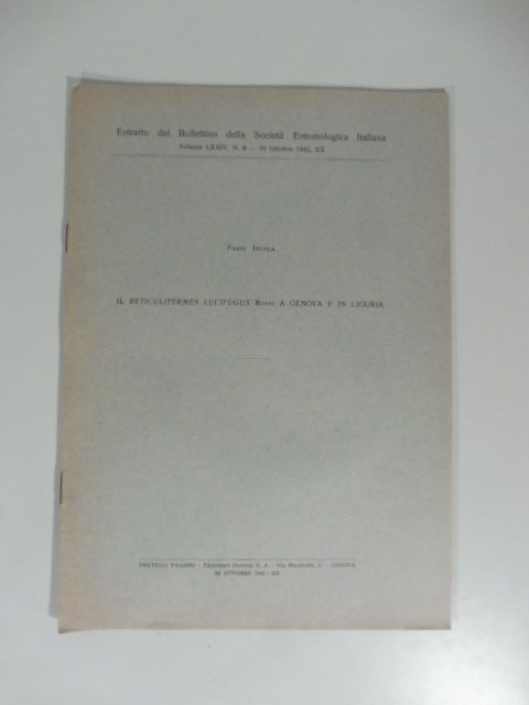 Il reticulitermes lucifugus Rossi a Genova e in Liguria | Libri antichi e moderni | Invrea Fabio