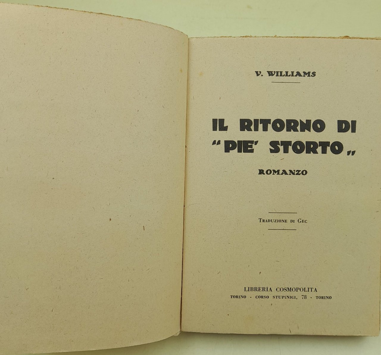 Il ritorno di " Pie' storto " | Libri antichi e moderni | Williams , V.