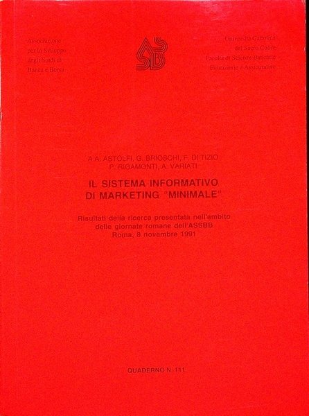 Il sistema informativo di marketing ”minimale”: risultati della ricerca presentata nell'ambito delle giornate romane dell'ASSBB: Roma: 8 novembre 1991 . | Libri antichi e moderni | Astolfi, A. A.