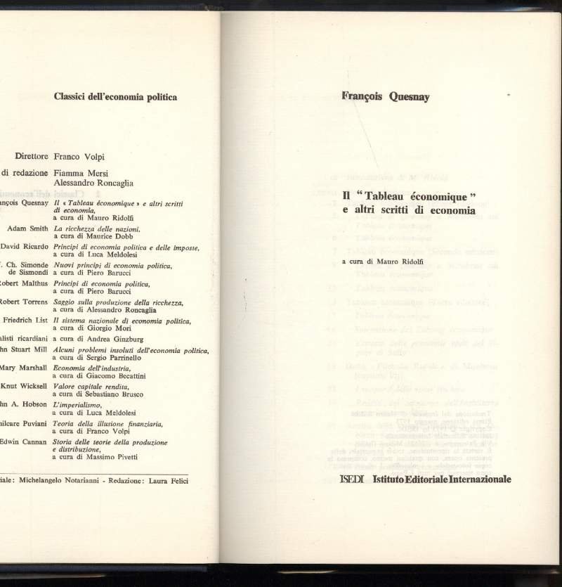 IL "TABLEAU ECONOMIQUE" e altri scritti di economia | Libri antichi e moderni | Quesnay Francois