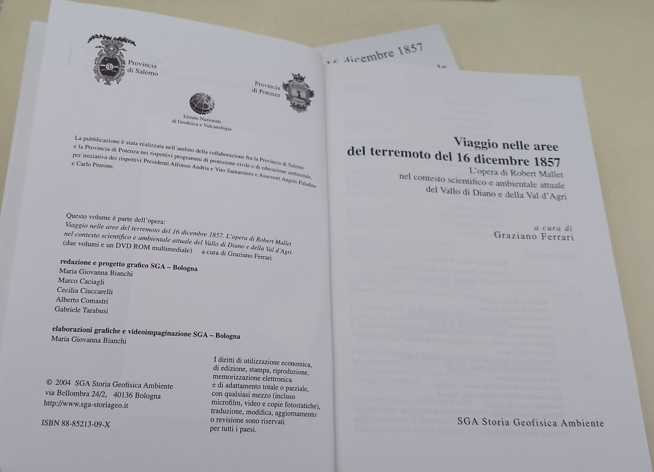 II vol.: Viaggio nelle aree del terremoto del 16 dicembre 1857- L'opera di Robert Mallet nel contesto scientifico e ambientale attuale del Vallo di Diano e della Val d'Agri, a cura di Graziano Ferrari, pp. 424, con le 156 fotografie del Fondo mallet conservate alla Royal Society di Londrta.