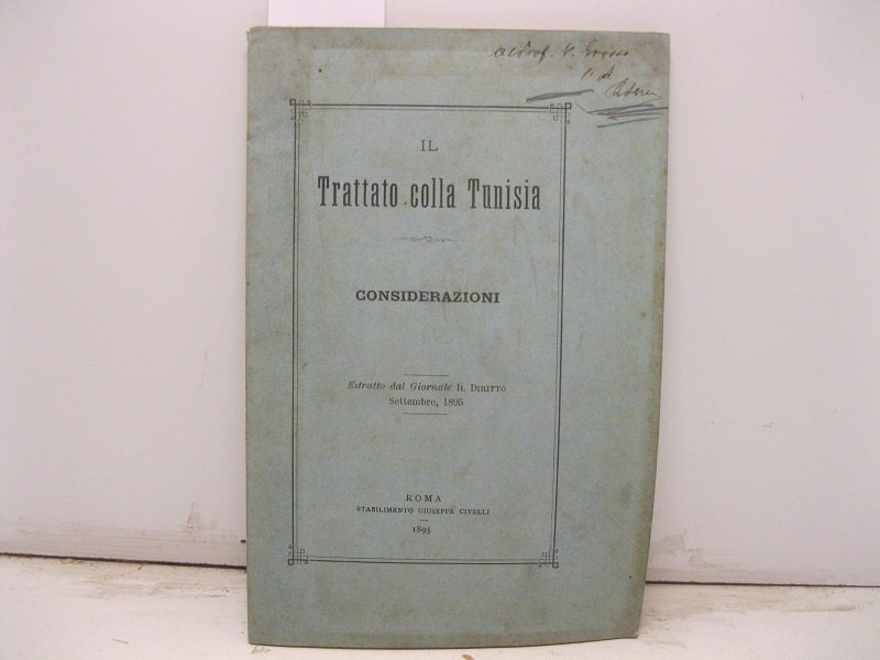 Il trattato colla Tunisia. Considerazioni. Estratto dal Giornale Il Diritto, settembre 1895 | Libri antichi e moderni |