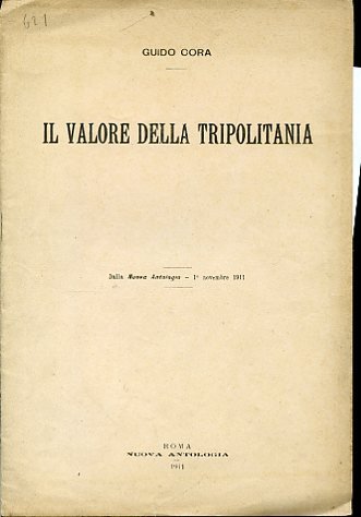 Il valore della Tripolitania. Dalla Nuova Antologia. 1° novembre 1911 | Libri antichi e moderni | Cora Guido