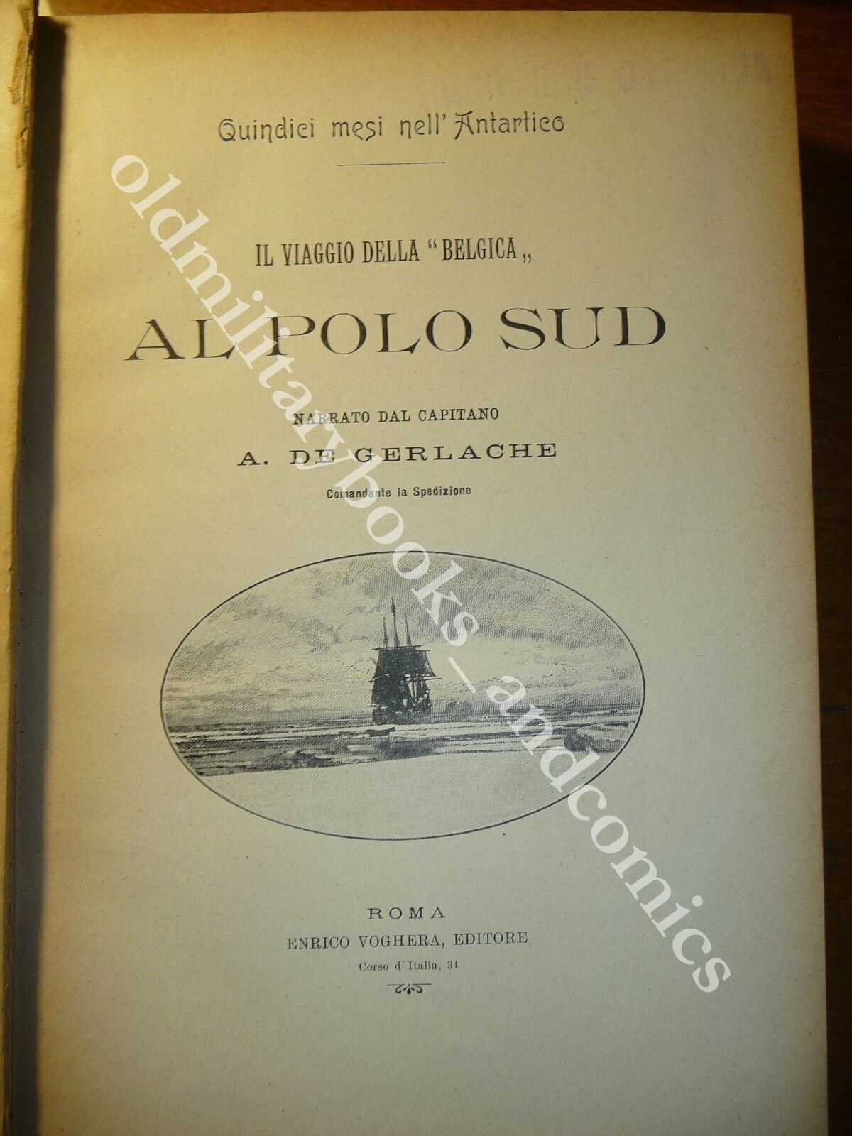Prima edizione italiana di un dettagliato resoconto della prima spedizione scientifica nei mari antartici, compiuta dalla nave "Belgica" al comando dell'ufficiale belga Adrien Victor Joseph de Gerlache de Gomery (Hasselt, 1866-1934) tra il 1897 e il 1899