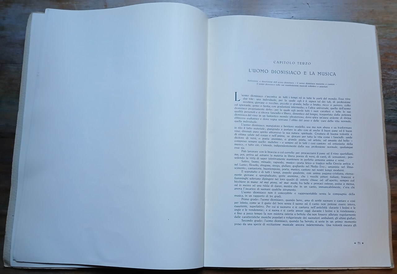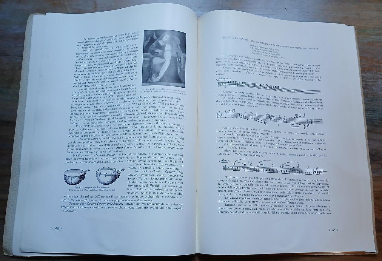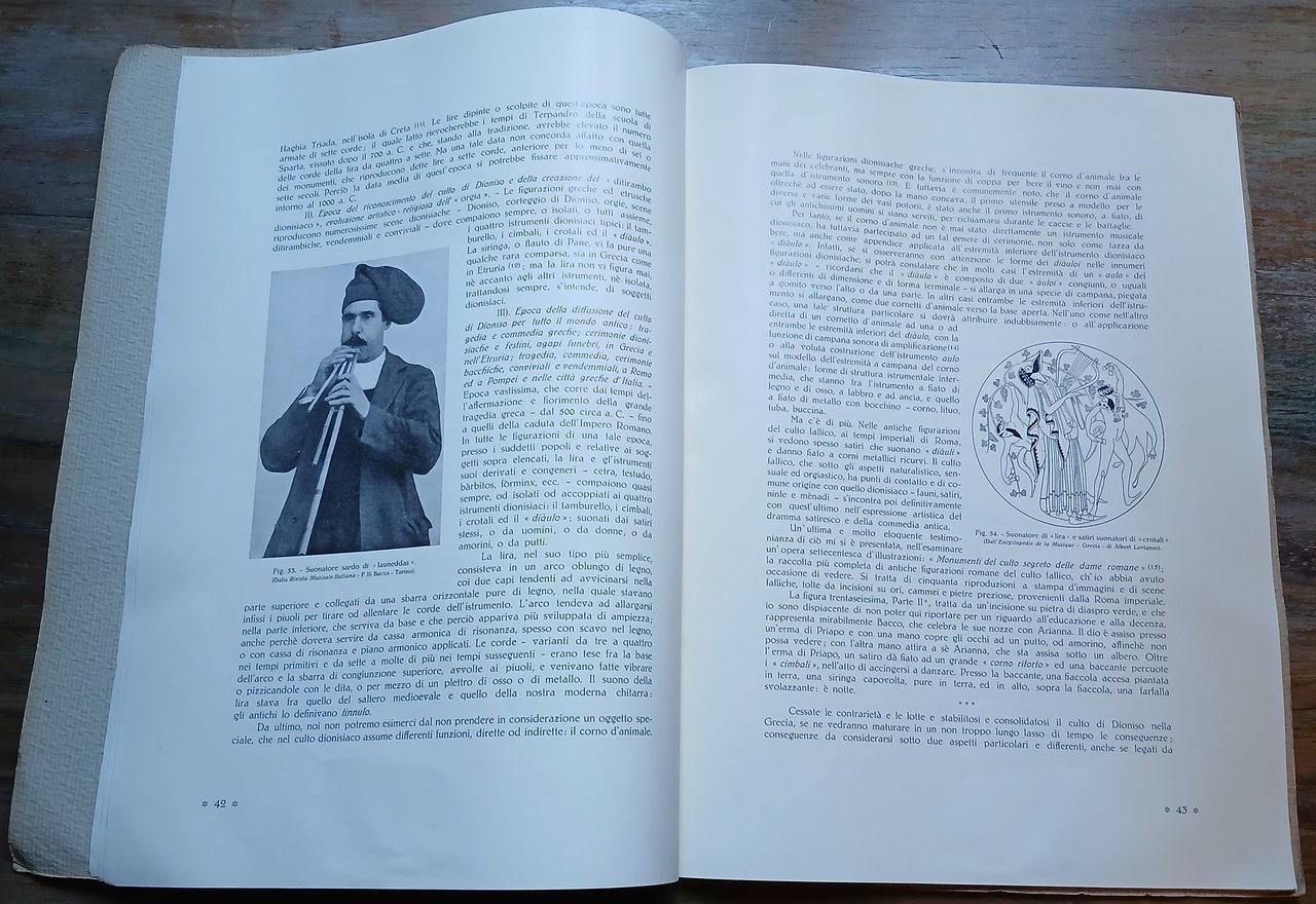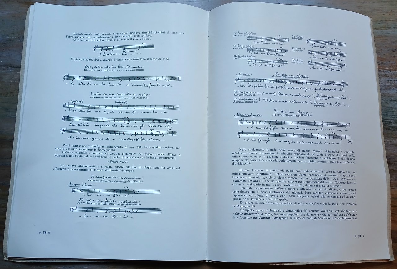 In 4° (cm 34,5 x 25), cartoncino martellato editoriale con titoli in rosso e nero su fondo avorio, pp. 37-84, con 19 figure in nero e numerose scritture musicali nel testo. Estratto da : A. Marescalchi - G- Dalmasso "Storia della vite e del vino in Italia", parte seconda - volume terzo. Lievi bruniture alla legatura, peraltro ottimo stato di conservazione.