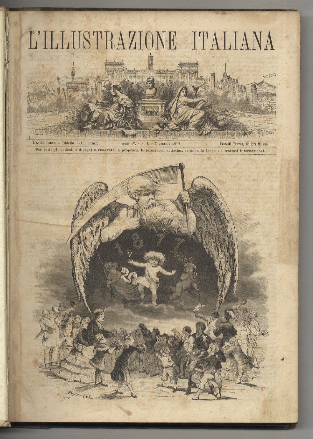ILLUSTRAZIONE (L') Italiana. Anno IV, 1877: primo semestre: dal n. 1 del 7 gennaio 1877 al n. 25 del 24 giugno 1877. | Libri antichi e moderni |