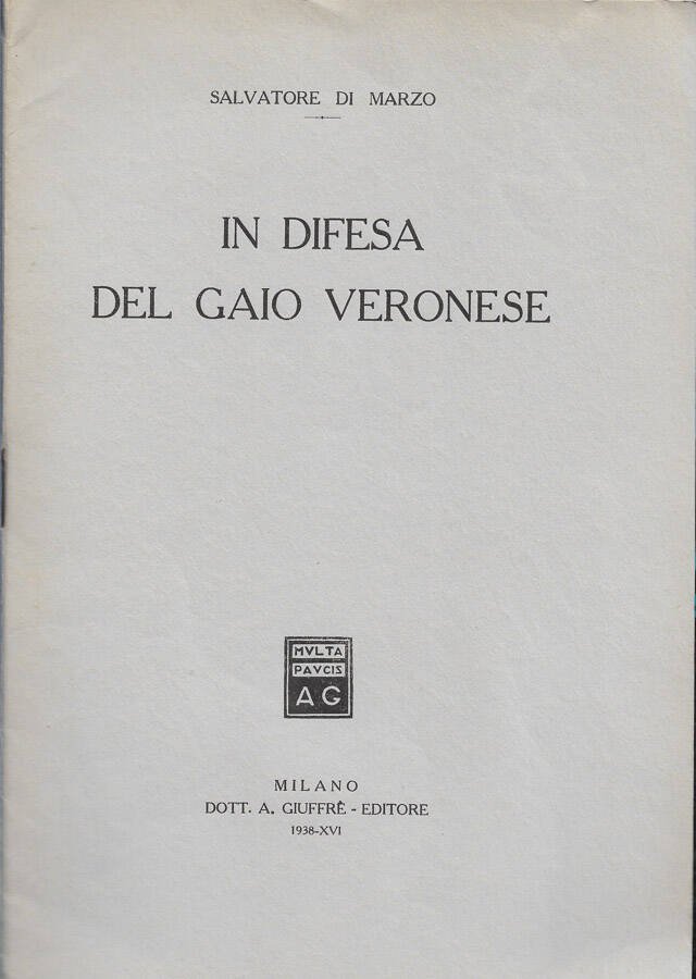 In difesa del Gaio Veronese | Libri antichi e moderni | Salvatore Di Marzo