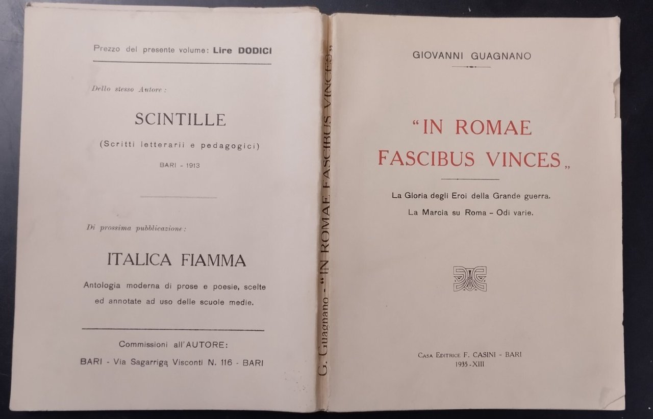 IN ROMAE FASCIBUS VINCES di Giovanni Guagnano 1935 Casini Libro fascismo Marcia | Libri antichi e moderni |