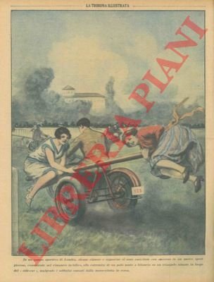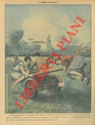 In un campo sportivo di Londra, alcune donne si sono esercitate in un nuovo sport, consistente nel rimanere in bilico, alle estremità di un palo posto a bilancia su un triangolo situato in luogo del "side car" , malgrado i sobbalzi causati dalla motocicletta in corsa. | Libri antichi e moderni |