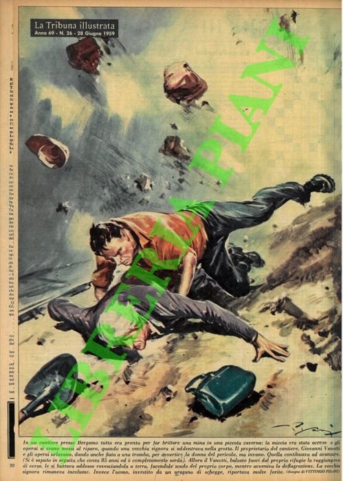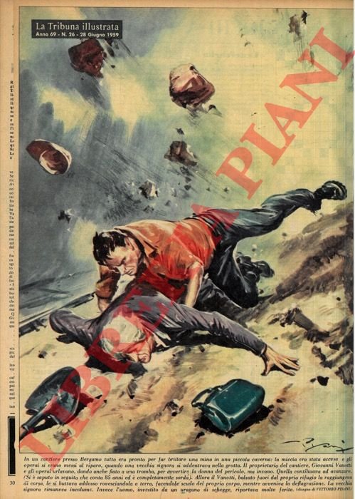 In un cantiere presso Bergamo tutto era pronto per far brillare una mina in una piccola caverna: la miccia era stata accesa e gli operai si erano messi al riparo, quando una vecchia signora si addentrava nella grotta. . | Libri antichi e moderni | Pisani Vittorio