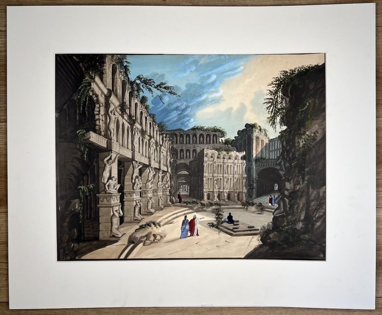 • [Gouache, Scena Con Figure Tra Antiche Rovine].