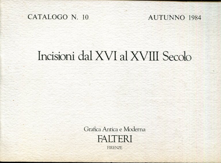 Incisioni dal 16. al 18. secolo : catalogo n. 10 autunno 1984 | Libri antichi e moderni | Falteri, ,Falteri