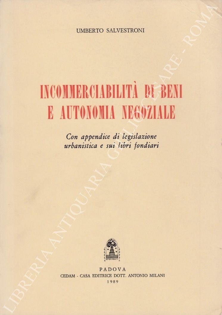 Incommerciabilità di beni e autonomia negoziale. Con appendice di legislazione urbanistica e sui libri fondiari | Libri antichi e moderni | Salvestroni Umberto