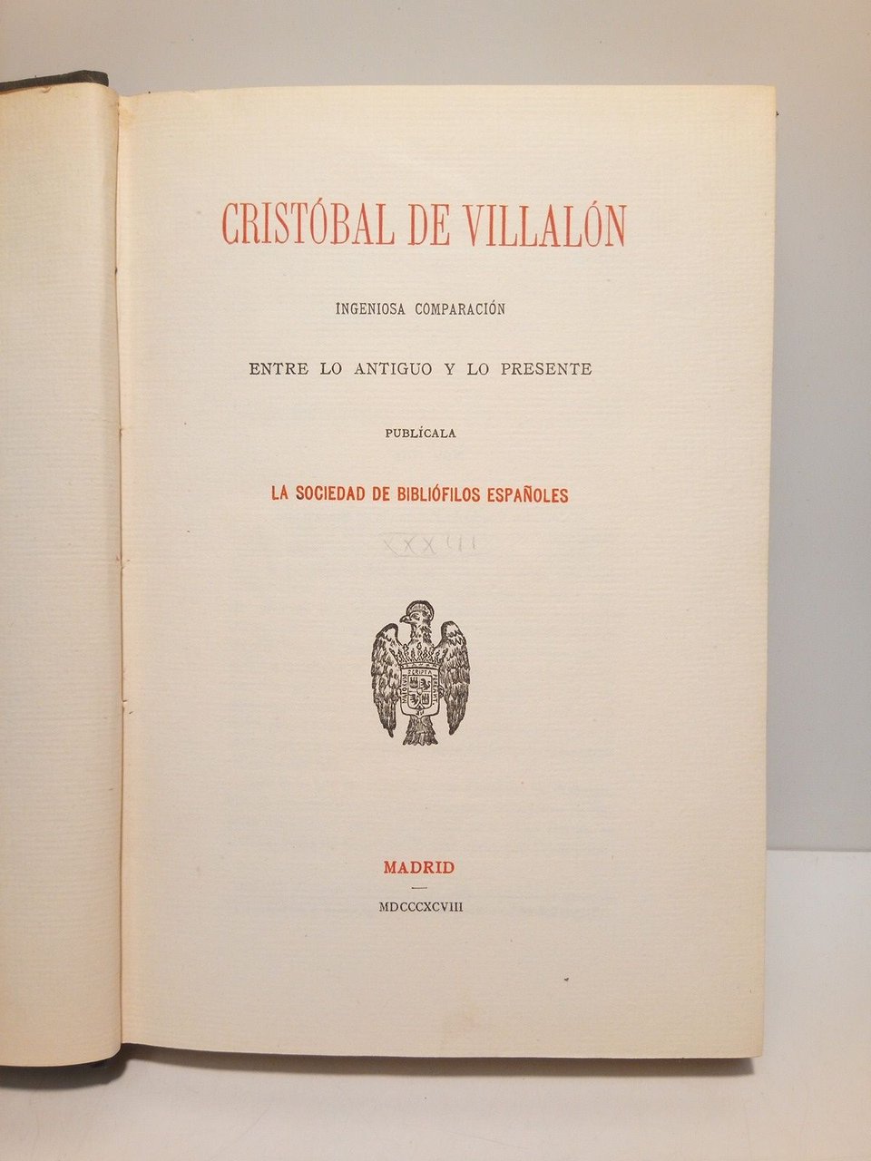 Ingeniosa comparación entre lo antiguo y lo presente / Introducción, "Vida de Cristobal de Villalón", por M. Serrano y Sanz | Libri antichi e moderni | Villalon, Cristobal De