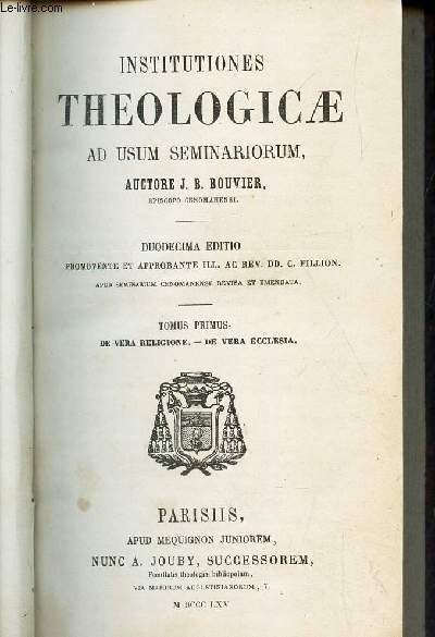 INSTITUTIONES THEOLOGICAE - USUM SEMINARIORUM, TOMUS I, De Vera Religione, De Vera Ecclesia | Libri antichi e moderni | Bouvier J.B.