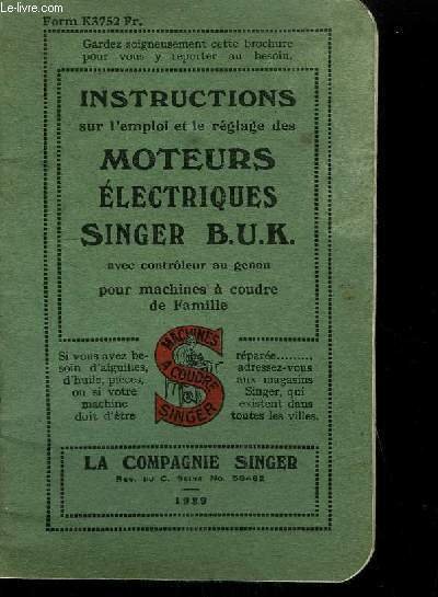 INSTRUCTIONS SUR L'EMPLOI ET LE REGLAGE DES MOTEURS ELECTRIQUES SINGER B.U.K. AVEC CONTROLEUR AU GENOU POUR MACHINES A COUDRE DE FAMILLE | Libri antichi e moderni | Collectif