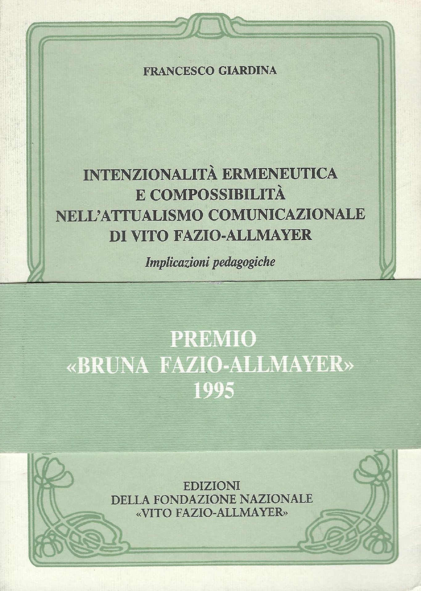 Intenzionalità ermeneutica e compossibilità nell'attualismo comunicazionale di Vito Fazio-Allmayer : implicazioni pedagogiche | Libri antichi e moderni | Giardina, Francesco, ,Giardina, Francesco
