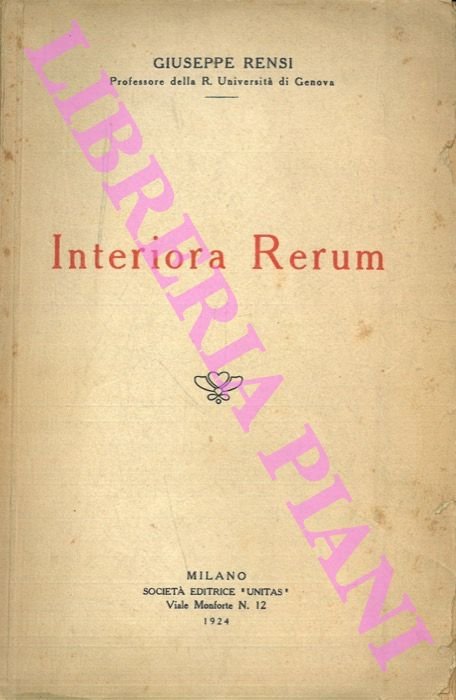 Interiora rerum. | Libri antichi e moderni | Rensi Giuseppe
