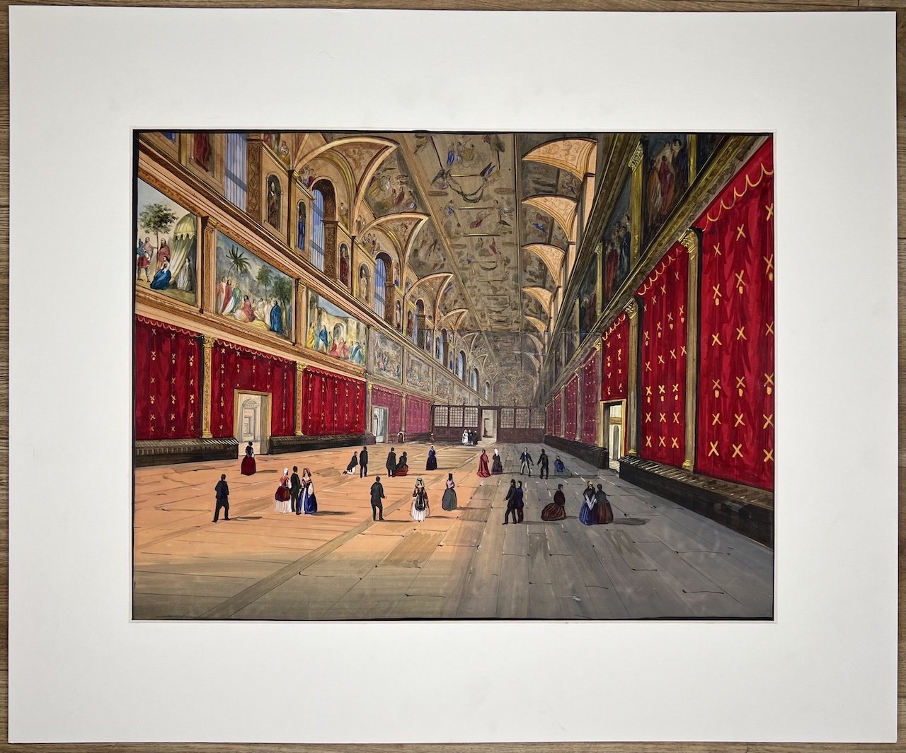 Interno della Cappella Sistina con particolari e pitture d'invenzione. | Libri antichi e moderni | [Gouache, Roma, Cappella Sistina].