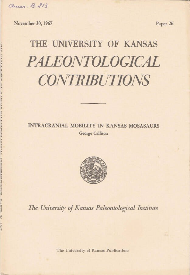 Intracranial mobility in Kansas mosasaurs | Libri antichi e moderni | George Callison