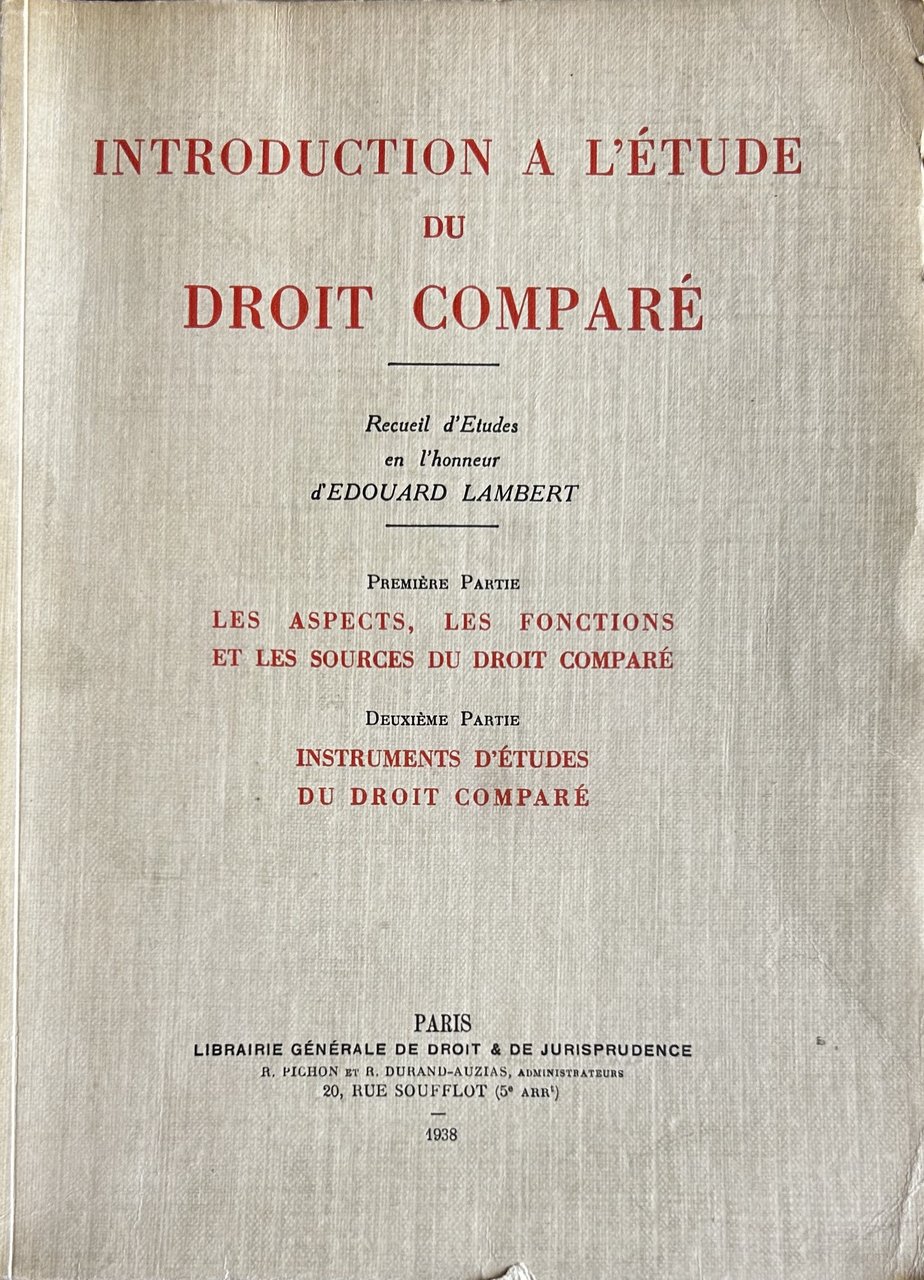 Introduction a l'etude du droit compare. Recueil d'etudes en l'honneur d'Edouard Lambert. Premiere partie - Les aspects, les fonctions et les sources du droit compare; Deuxieme partie - Instruments d'etudes du droit compare; Troisieme partie - Le droit compare comme science juridique moderne; Quatrieme partie - Le droit compare comme science internationale moderne