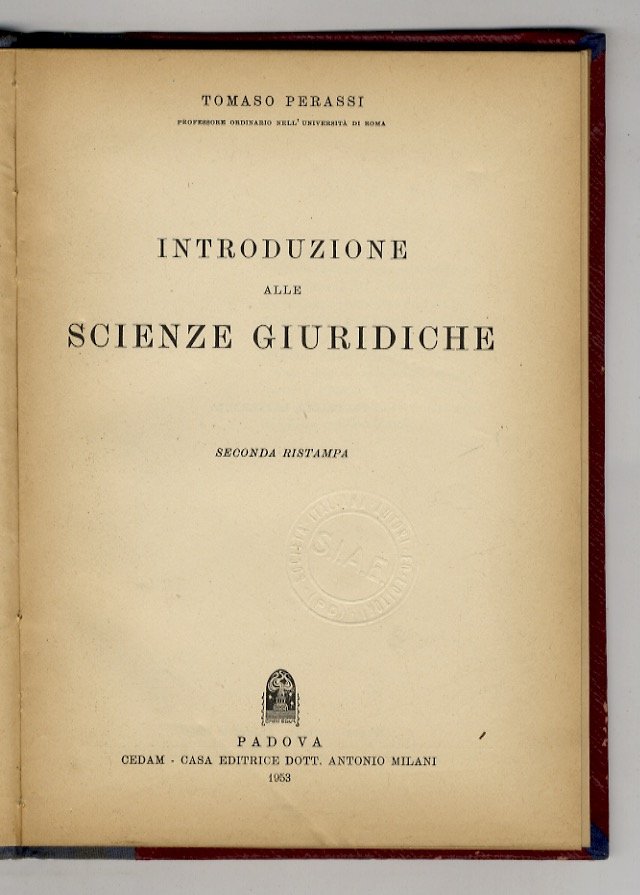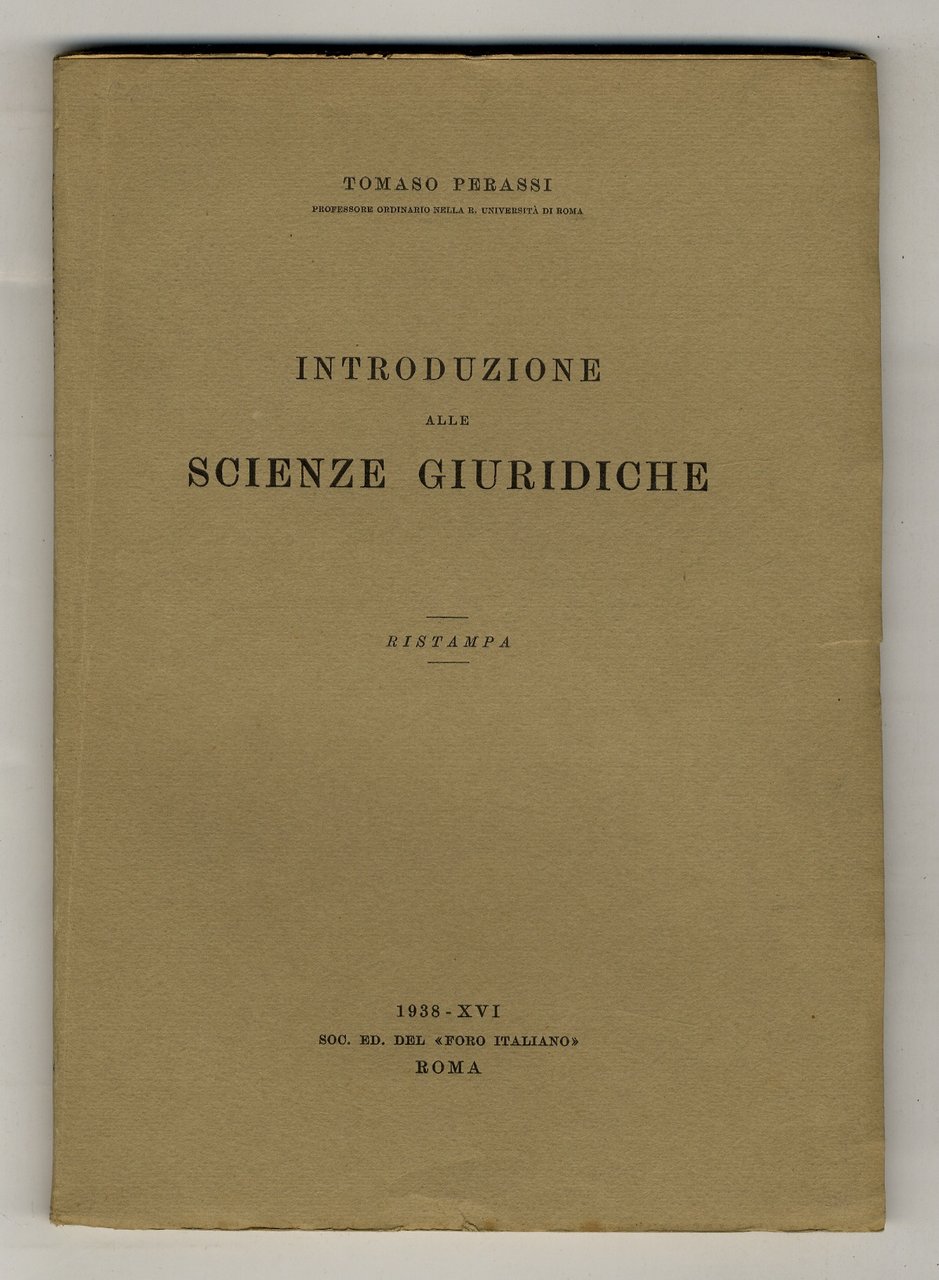 Introduzione alle scienze giuridiche. Ristampa. | Libri antichi e moderni | Perassi Tomaso.
