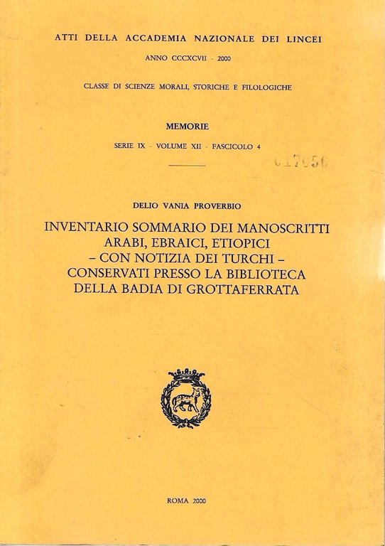 Inventario sommario dei manoscritti arabi, ebraici, etiopici - con notizia dei turchi - conservato presso la Biblioteca della Badia di Grottaferrata | Libri antichi e moderni | Proverbio, Delio Vania, ,Proverbio, Delio Vania