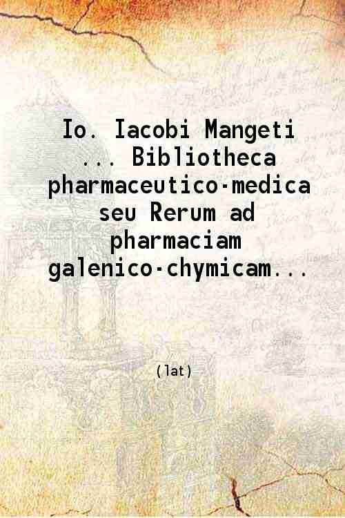 Io. Iacobi Mangeti, medicinae doctoris, & serenissimi ac potentiss. regis Prussiae archiatri, Bibliotheca pharmaceutico-medica Volume 1 1703