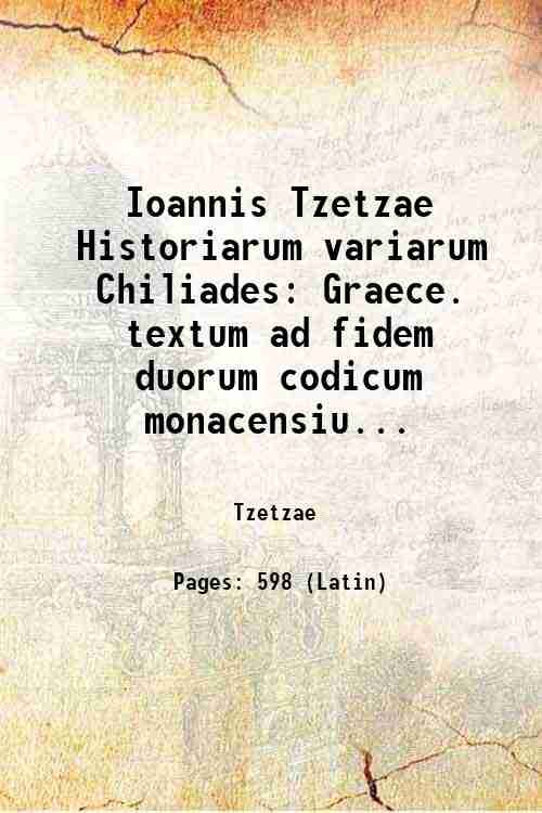 Ioannis Tzetzae Historiarum variarum Chiliades Graece. textum ad fidem duorum codicum monacensium recognovit 1826