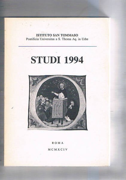 Istituto San Tommaso Studi (nuova serie - 1). Attualità e inevitabilità della metafisica negli studi tomistici; la situazione degli studi tomistici nel post Concilio attualità ed eclisse, come studiare san Tommaso oggi; la tradizione delle opere di san Tommaso; la tabula aurea di Pietro da Bergamo; ecc.