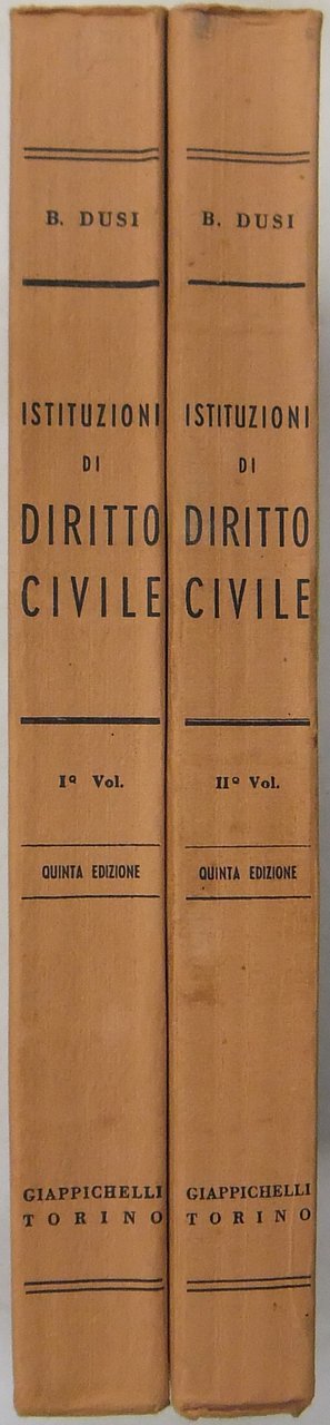 Istituzioni di diritto civile. Vol. I - Quinta edizione aggiornata da Silvio Romano Vol. II - Quinta edizione aggiornata da Alberto Montel | Libri antichi e moderni | Dusi Bartolomeo (1866-1923)