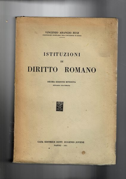 Istituzioni di diritto romano. Decima edizione. | Libri antichi e moderni | Arangio Ruiz Vincenzo.