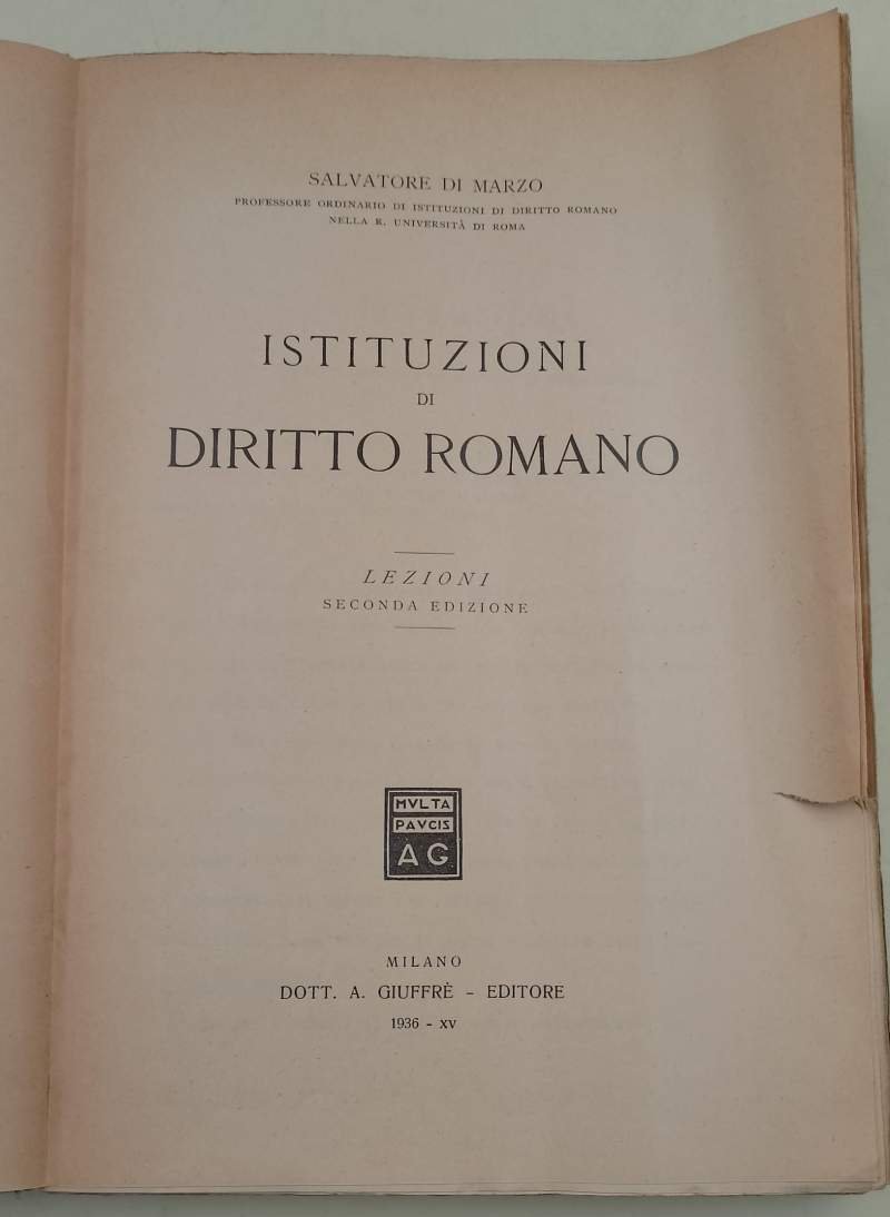 ISTITUZIONI DI DIRITTO ROMANO-LEZIONI( 1936) | Libri antichi e moderni | Di Marzo Salvatore