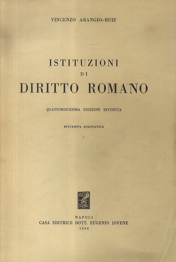 Istituzioni di diritto romano. Quattordicesima edizione riveduta. | Libri antichi e moderni | Arangio Ruiz Vincenzo.