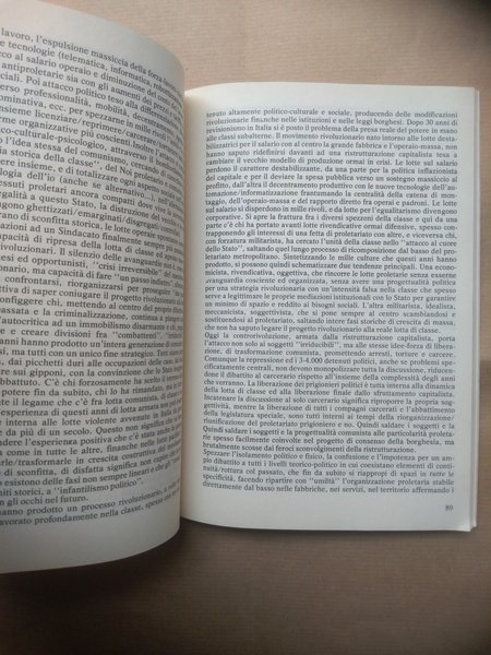 Un volume (21 cm) di 157 pagine. Brossura editoriale, un angolo piegato, qualche usura. Introduzione di Sergio Spazzali, Testi e documenti elaborati in carcere dai terroristi rossi, Brigate Rosse, ecc. e da collettivi di appoggio esterni alle carceri.